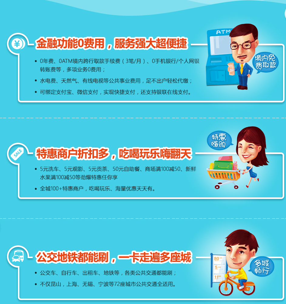 全新市民卡不限户籍,对新老昆山人免费发放,使广大市民充分享受优惠、便捷的公共事业服务,充分体验“好卡好生活”的现代生活。