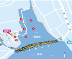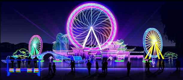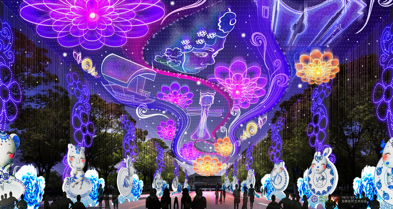 在南湖湾水面设置“月上南湖 情满中华”大型系列灯组,以互动灯组的形式展示中华传统文化。制作中国地图的大型灯面,为祖国加油祈福。